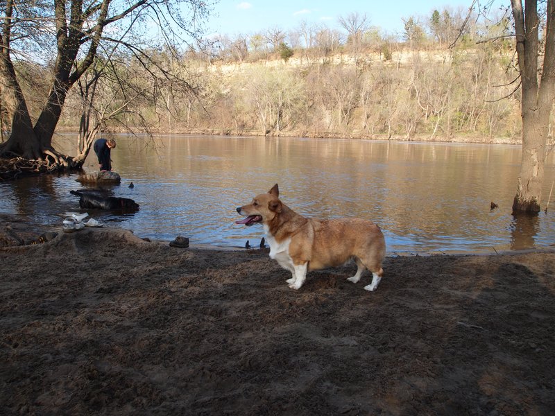 天氣開始熱了,開始去公園游泳了。發財顯然記得去公園的路,開上那條街就興奮得一直哼哼哼。美莉目前仍是處於觀望狀態,會下去泡泡腳。現在水位還太高,岸邊的灘很陡,等水位退一點,岸邊平緩一點的地方,再來教美莉游泳吧。